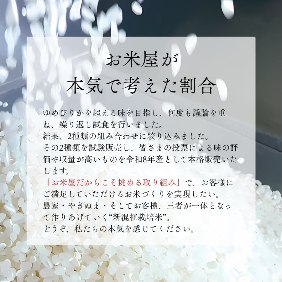お米屋である私たち株式会社柳沼が本気で取り組んで作った2種類の新混植栽培米です。
