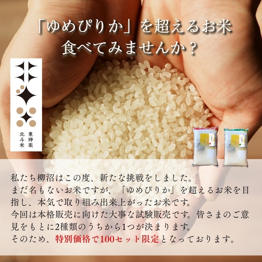 皆さまからのアンケートをもとに令和8年産の本格販売に向けて、1種類に決める期間限定の試験販売となっております。ぜひ参加して貴重なご意見をお聞かせください。