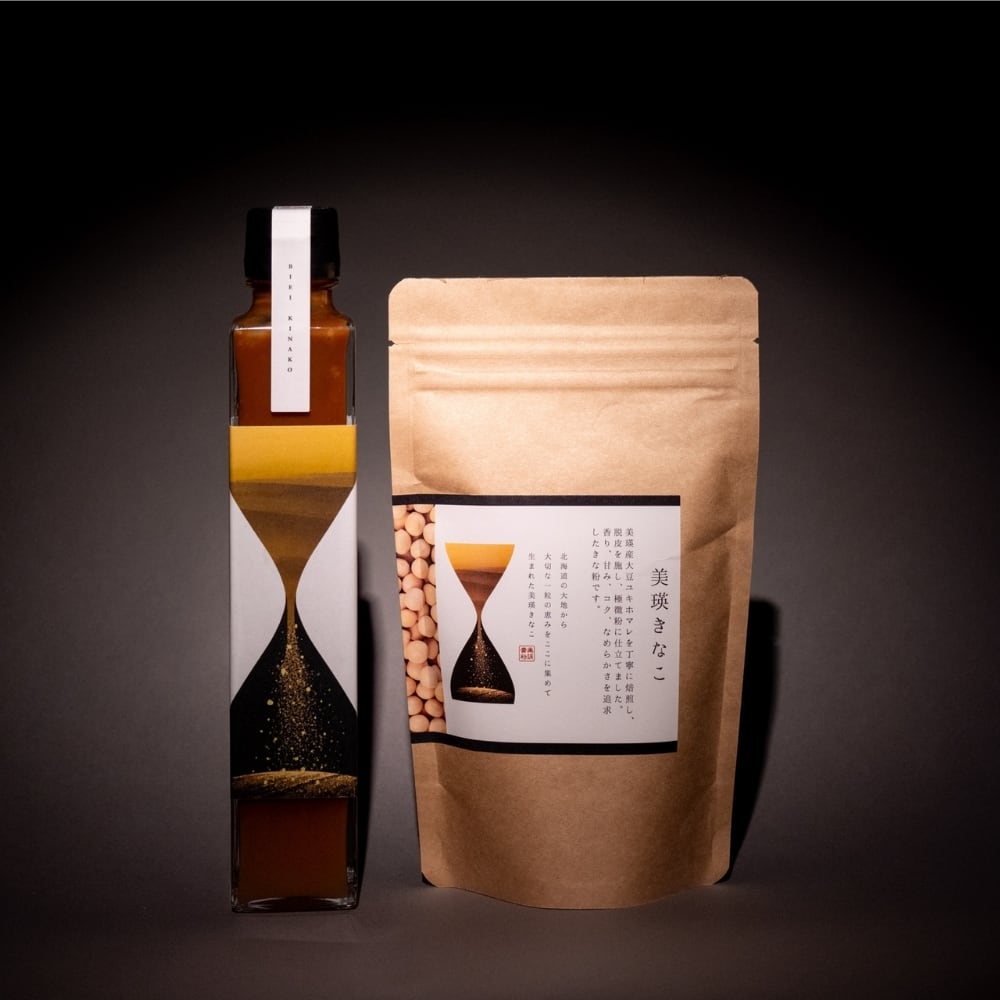 甘み、コク、香りが強い美瑛産大豆の「ゆきほまれ」を使用した、超極微粉のきなこと、シロップにした超なめらかなきなこ蜜のセット商品です。