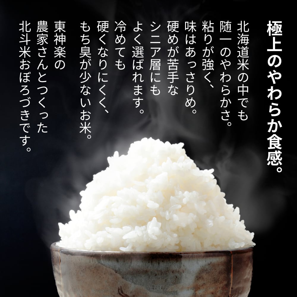 冷涼な気候に適した品種として開発された「北斗米おぼろづき」。粒が大きくふっくらとしており、アミロースが低いため、強い粘りと柔らかさが特徴です。炊き上がりはつやがあり、ほのかな甘みを感じられます。官能評価では「コシヒカリ」に並ぶ高評価を獲得しており、北海道を代表する高品質な米として、地元はもちろん全国的にも人気があります。